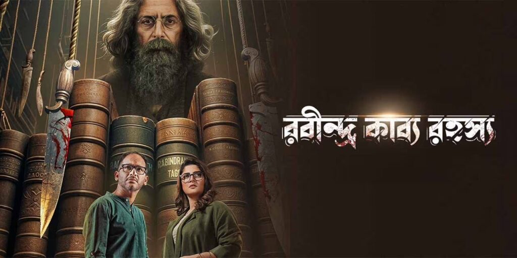Rabindra Kabya Rahasya - A film by Sayantan Ghoshal in which a modern-day poet, Avik Bose (Ritwick Chakraborty) uncovers a dark conspiracy surrounding a lost manuscript of Rabindranath Tagore, leading to a trail of murders, betrayal and a race to protect Indias cultural legacy. Hiya Sen (Srabanti Chatterjee) is a researcher who teams up with Avik Bose to recover the lost manuscript through the maze of riddles.